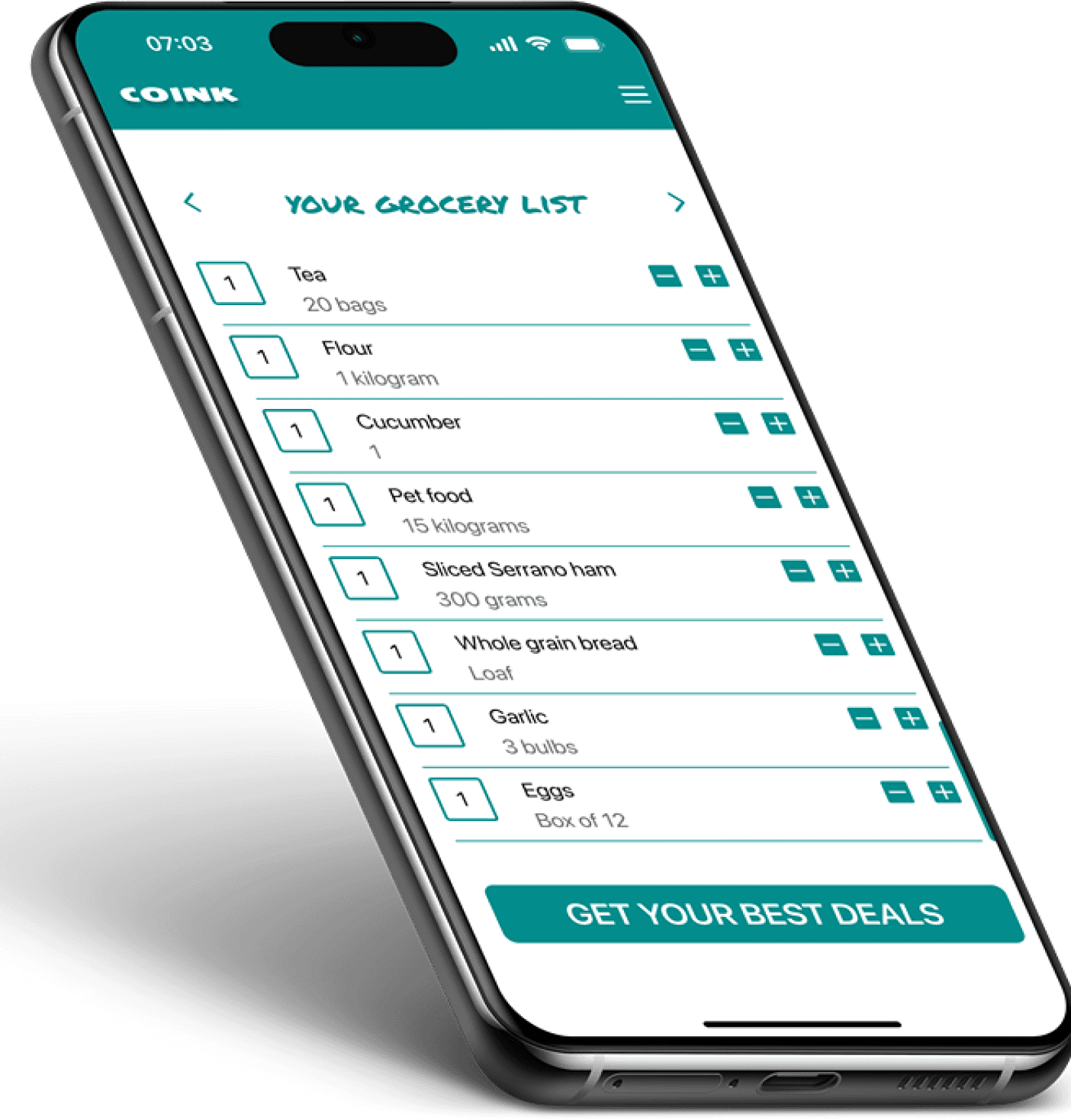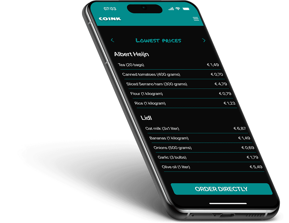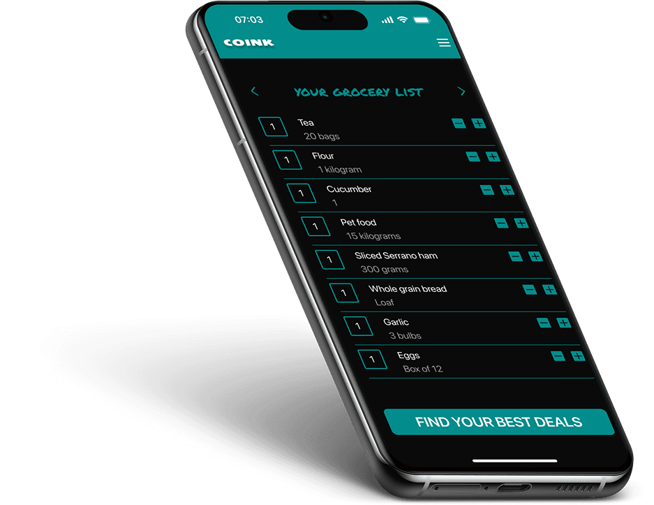 Coink makes saving fun and simple. Pick your supermarkets, set your preferences, and fill in your grocery list. The app instantly shows where to find the best deals. And just one click away from delivery.